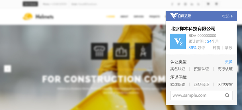 資信認(rèn)證是百度基于第三方實地獲取的企業(yè)經(jīng)營資質(zhì)及相關(guān)資產(chǎn)情況等信息,為企業(yè)提供前述客觀實力信息的特別展現(xiàn),幫助其更好地獲得目標(biāo)消費人群的關(guān)注及信任。